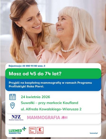 LUX MED Diagnostyka zaprasza na bezpłatne badania mammograficzne w technologii cyfrowej w ramach Programu Profilaktyki Raka Piersi finansowanego przez NFZ. W 2026 roku po raz pierwszy w badaniu będą mogły uczestniczyć Panie, które urodziły się w 1981 roku.