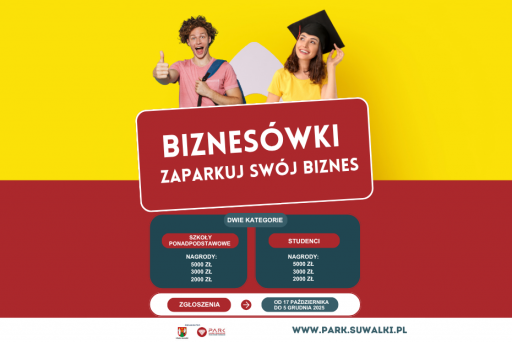 Park Naukowo-Technologiczny Polska-Wschód w Suwałkach oraz Miasto Suwałki, zapraszają do udziału w kolejnej edycji konkursu „Biznesówki – ZaPARKuj swój Biznes”.