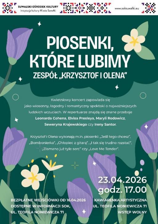 Wstęp wolny / obowiązują wejściówki dostępne w informacji Suwalskiego Ośrodka Kultury przy ul. Teofila Noniewicza 71 od 16 kwietnia 2026 r.