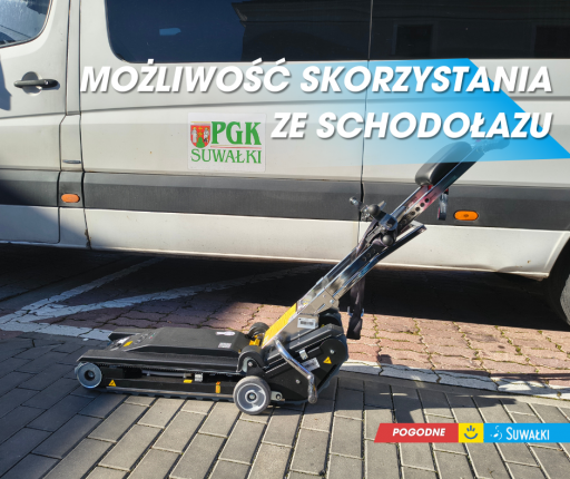 Uprzejmie informujemy, że osoby korzystające z transportu osób niepełnosprawnych, który jest realizowany przez Przedsiębiorstwo Gospodarki Komunalnej w Suwałkach Sp. z o.o. mogą również korzystać z pomocy schodołazu.