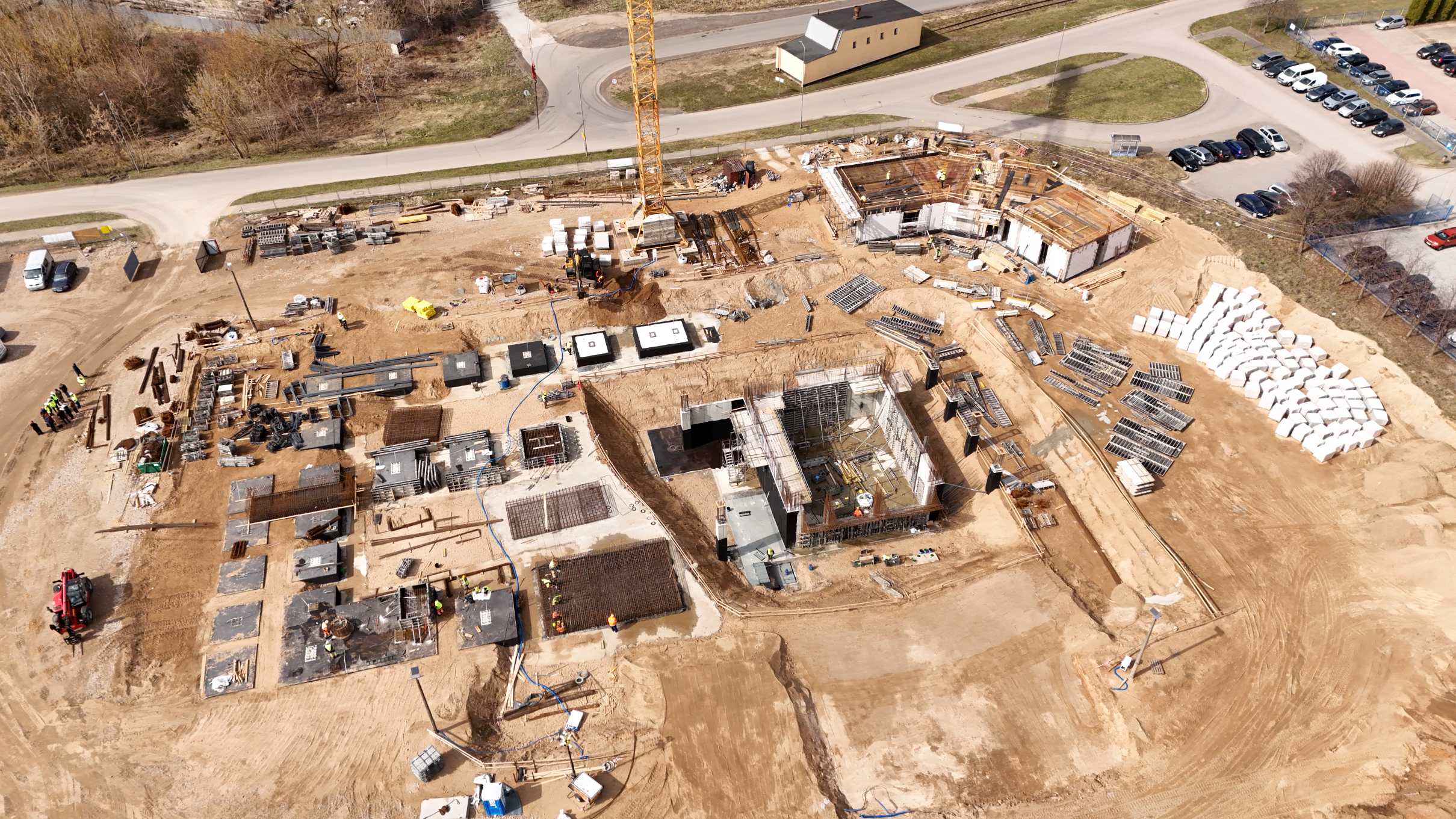 Aktualnie przy budynku administracyjnym wznoszone są ściany pierwszej kondygnacji. W kwietniu wykonawca planuje wylanie stropu. Równolegle trwa zbrojenie i szalowanie ścian kluczowych obiektów technicznych: bunkra na odpady, hali przyjęć oraz maszynowni. Ich wysokość osiągnie w tym miesiącu do 8 metrów.Na plac budowy dotarły już pierwsze elementy zespołu kotła z paleniskiem. W najbliższych tygodniach spodziewane są dostawy komponentów systemu oczyszczania spalin.