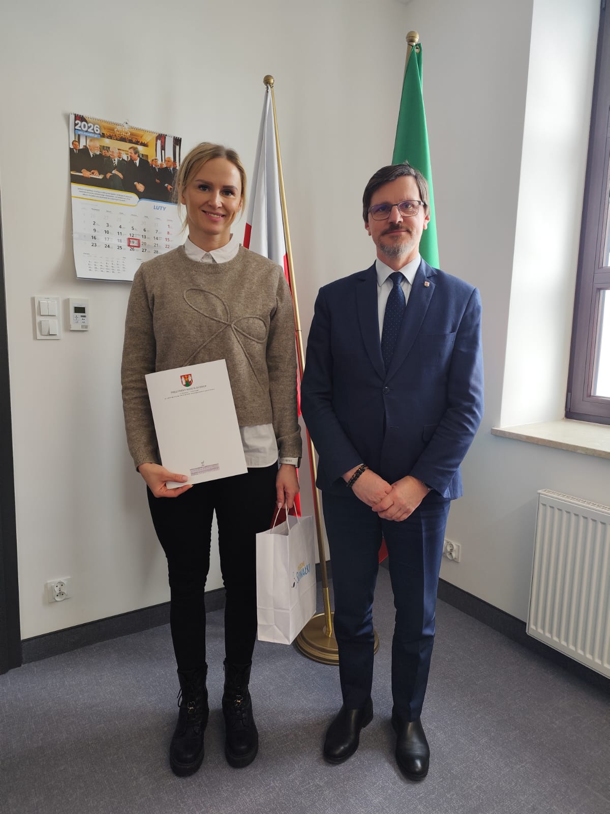 W dniu 19 lutego 2026 r. w miejskim Ratuszu odbyło się spotkanie Zastępcy Prezydenta Miasta Suwałk z medalistką Mistrzostw Europy w pływaniu lodowym panią Magdaleną Bielawską.