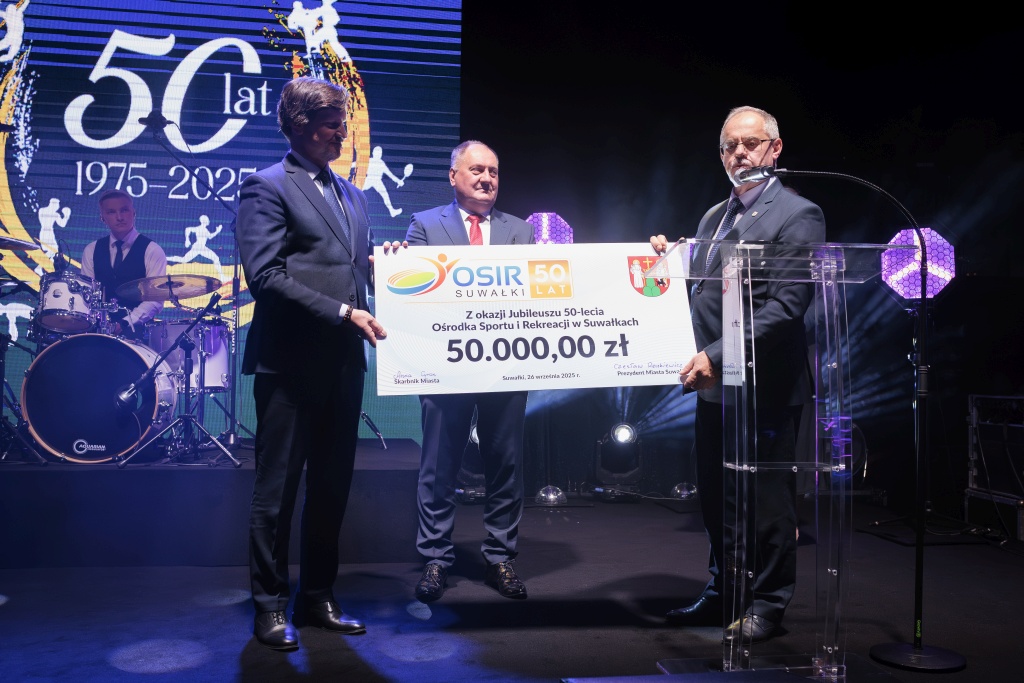 Jubileuszowa gala była okazją do podziękowania partnerom i zasłużonym pracownikom. Minister Sportu przyznał Odznaki „Za Zasługi dla Sportu” dwóm osobom: srebrną odznakę otrzymał Stanisław Skibicki, wieloletni instruktor modelarstwa, a brązową Kamil Klimek, twórca wielu wydarzeń sportowych w Suwałkach.W uroczystym podsumowaniu półwiecznej historii, Prezydent Renkiewicz życzył OSiR-owi stabilnego rozwoju i dbałości o istniejącą bazę sportowo – rekreacyjną.