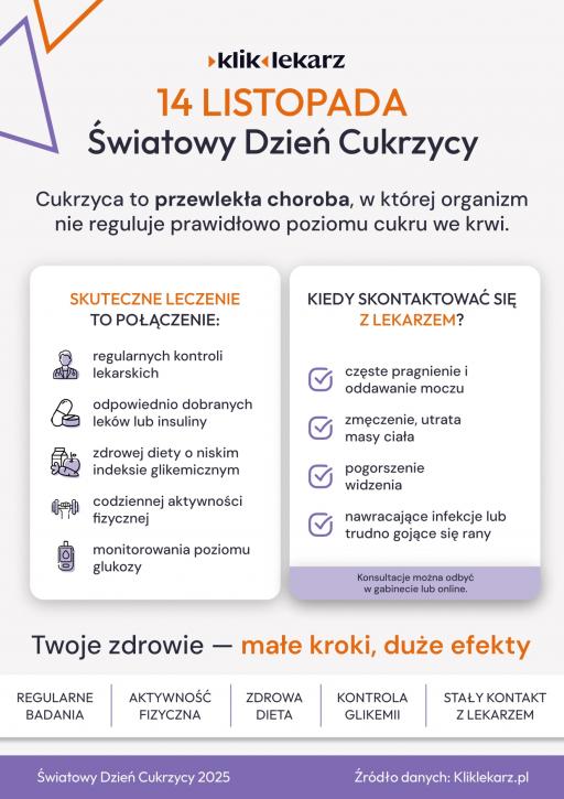 Światowy Dzień Walki z Cukrzycą przypomina, jak ważne jest wczesne rozpoznanie objawów, świadoma profilaktyka oraz dostęp do skutecznych metod leczenia. Nowoczesne podejście terapeutyczne pozwala wielu pacjentom prowadzić aktywne i bezpieczne życie, a w części przypadków znacząco spowalnia rozwój choroby.
