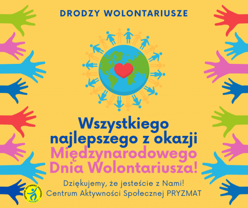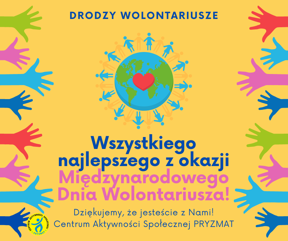 „Dzień Wolontariusza to czas, by powiedzieć DZIĘKUJEMY wszystkim tym, którzy poprzez swoją pracę, pasję i zaangażowanie zmieniają naszą rzeczywistość. To wolontariusze każdego dnia, budują lepszą przyszłość dla nas wszystkich”, jak podkreśla Anna Ruszewska – szefowa Centrum Wolontariatu PRYZMAT.