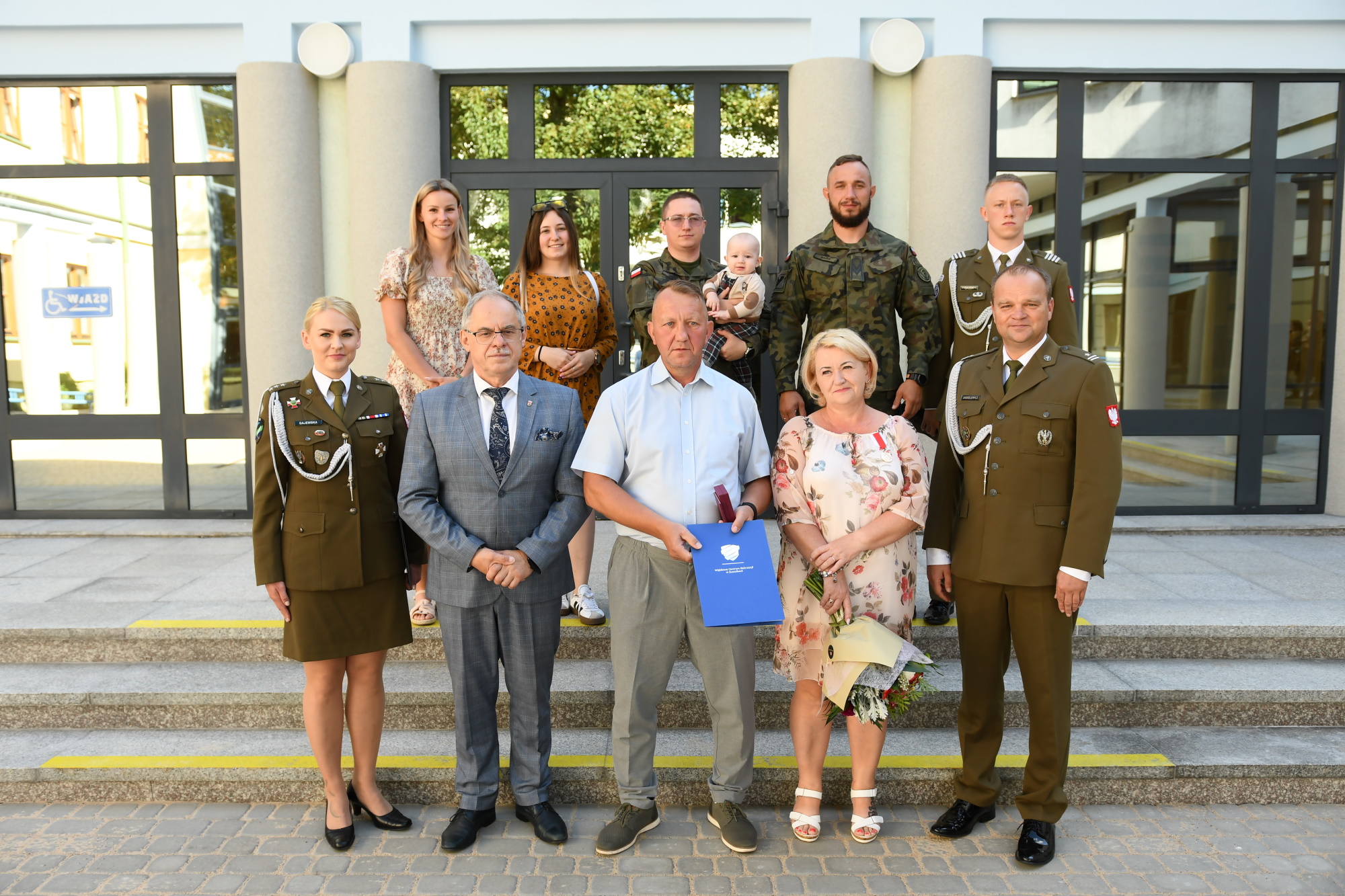 W imieniu Ministra Obrony Narodowej, Zastępca Szefa Wojskowego Centrum Rekrutacji w Suwałkach - mjr Przemysław Jasiulewicz wręczył Pani Iwonie złoty medal "Za Zasługi Dla Obronności Kraju" oraz przekazał list gratulacyjny i serdeczne podziękowania za wychowanie dzieci w duchu patriotycznym do pełnionej wzorowo i ofiarnie służby w Wojsku Polskim. W imieniu Samorządu Miasta gratulacje oraz życzenia wyróżnionym złożył Prezydenta Miasta Suwałki Czesław Renkiewicz.