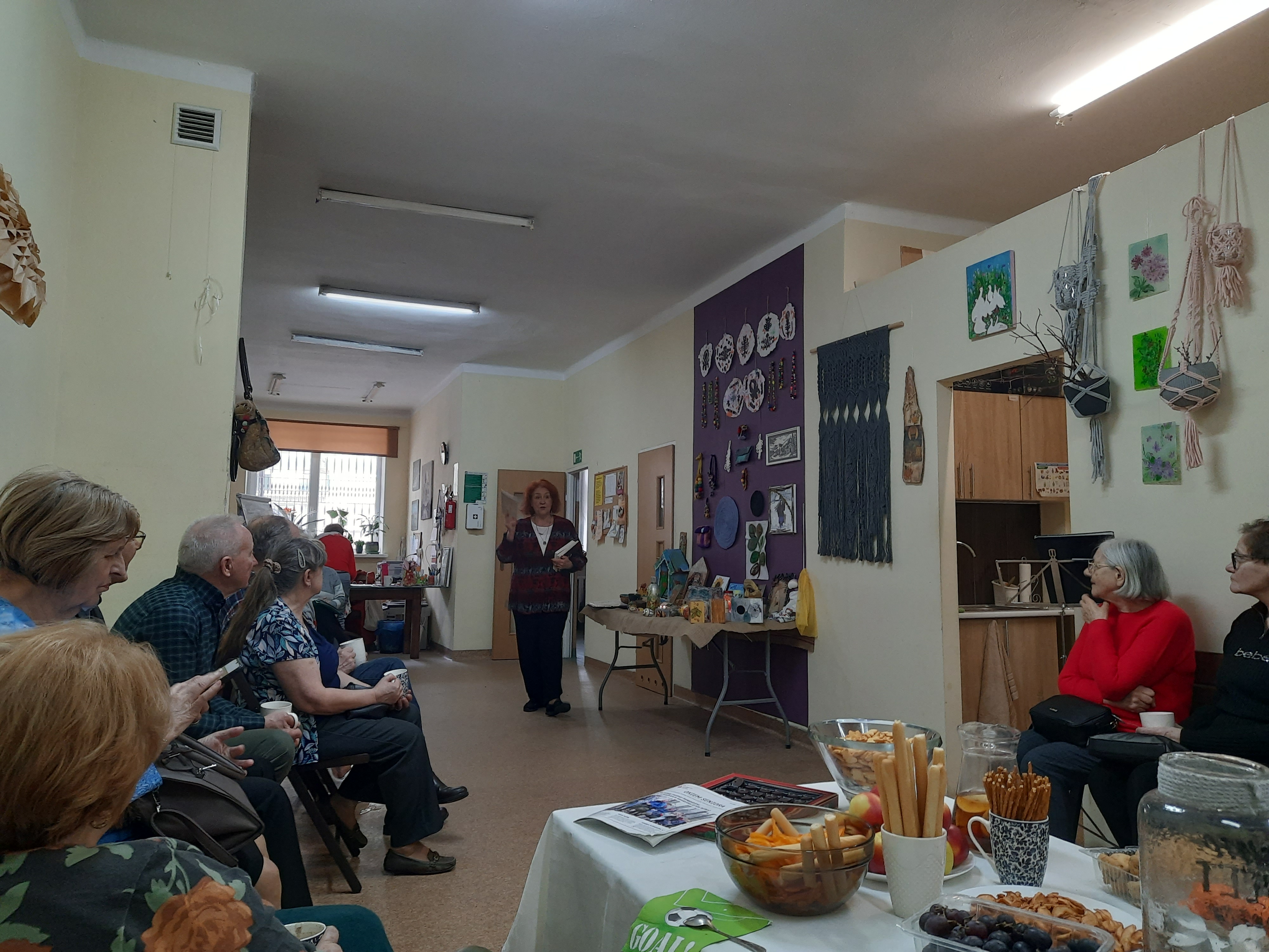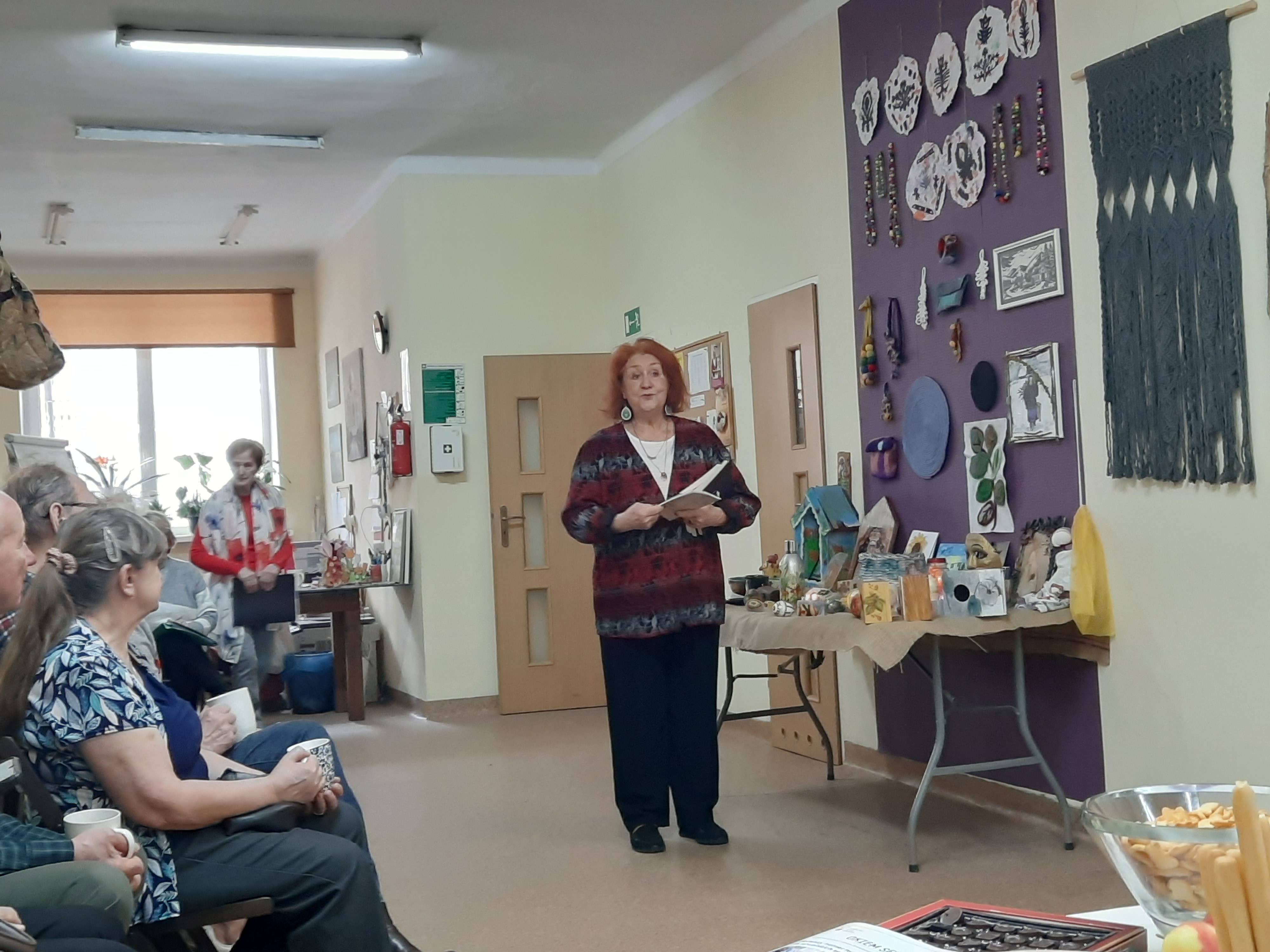 - Przez dziesięć lat działalności klubu stworzyliśmy wiele prac artystycznych - mówiła Mirosława Dorochowicz, pomysłodawczyni wydarzenia. - Są wśród nich obrazy, wyroby ceramiczne, makramy, maski, ozdoby świąteczne i rzeczy do domu. Ale pierwszy raz odważyliśmy się je pokazać, bo ze wszech miar na to zasługują. W klubie mamy dużo różnych zajęć artystycznych - śpiewamy, przygotowujemy spektakle, piszemy i czytamy wiersze, nigdy jednak nie pokazywaliśmy naszych prac plastycznych, stąd pomysł zorganizowania dzisiejszego wydarzenia i zaproszenia gości. Mam nadzieję, że nasze prace spodobają się Pańśtwu i wypytacie ich twórców o szczegóły.