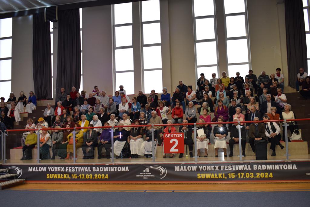 Wręczono także puchary najlepszym sportowcom szóstej edycji Suwalskiej Olimpiady Seniorów, którzy przez cały rok rywalizowali w dyscyplinach lekkoatletycznych, bowlingu, turnieju strzeleckim i wzięli udział w wyprawie rowerowej. Zwycięzcom gratulował Waldemar Borysewicz, dyrektor Ośrodka Sportu i Rekreacji i Aneta Walendykiewicz, opiekunka i dobry duch zmagań sportowych. Wśród Pań kolejno trzy pierwsze miejsca zajęły: Danuta Sadurska, Krystyna Polkowska, Aniela Soroka. Wśród mężczyzn najlepsi byli: Andrzej Bąkała, Stefan Dojnikowski, Sylwester Szymański. Wydarzenie zakończyła zabawa z Didżejem Turkiem. A polonez na pięćdziesiąt kilka par zadziwił chyba nawet tańczących.