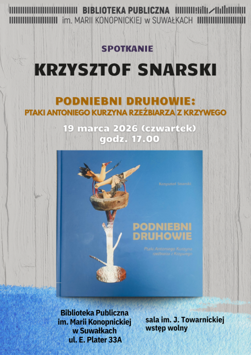 Biblioteka Publiczna im. Marii Konopnickiej w Suwałkach zaprasza 19 marca o godz. 17.00 na niezwykłe spotkanie.